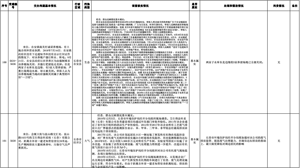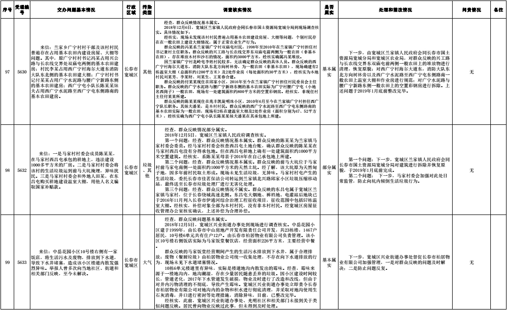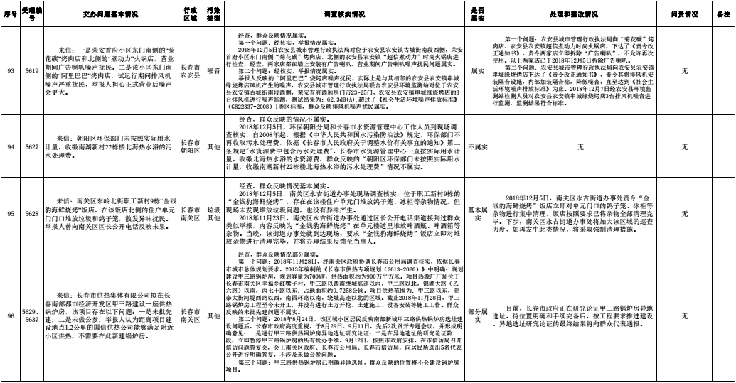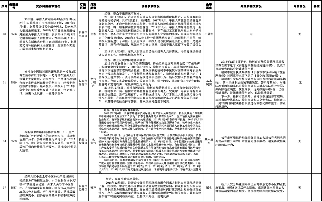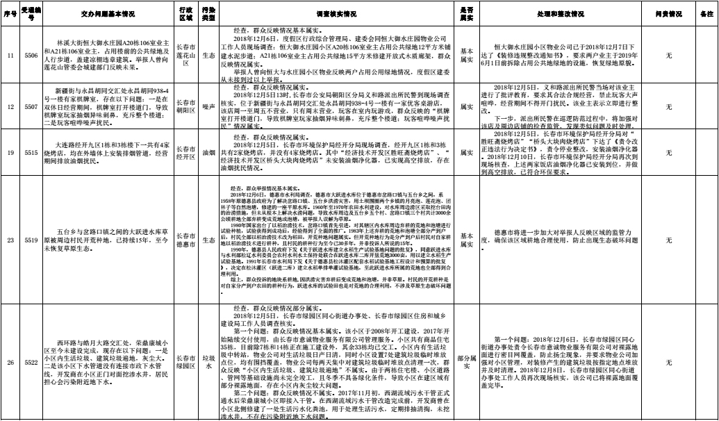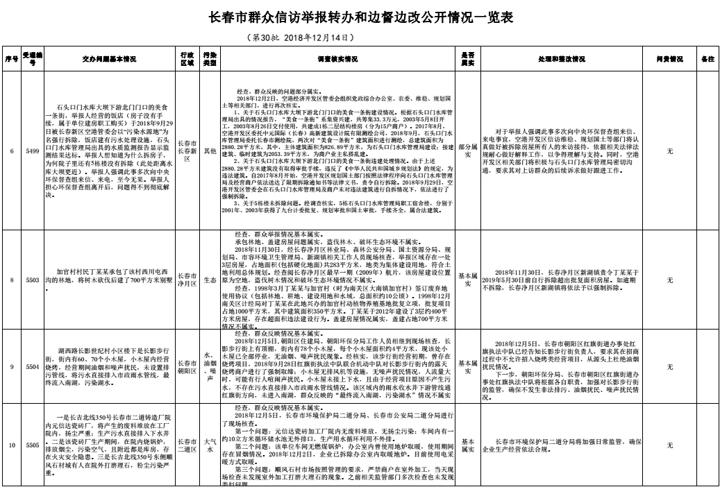 长春市群众信访举报转办和边督边改公开情况一览表(第30批 2018年12月14日)