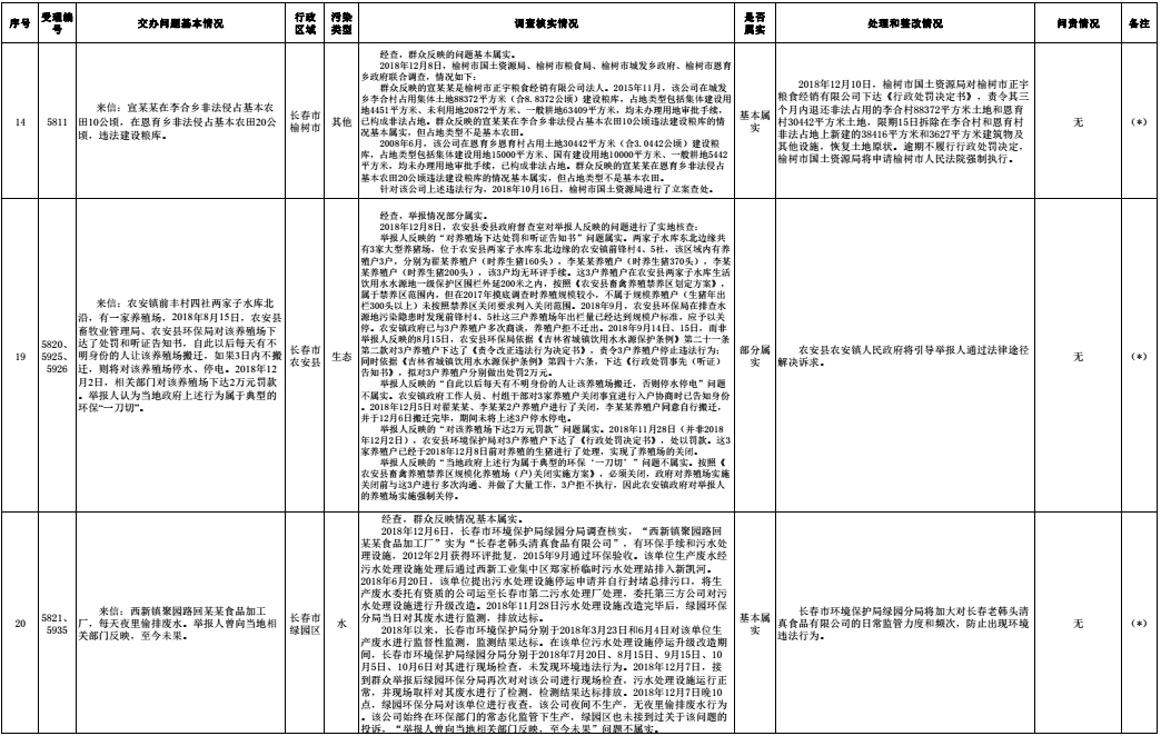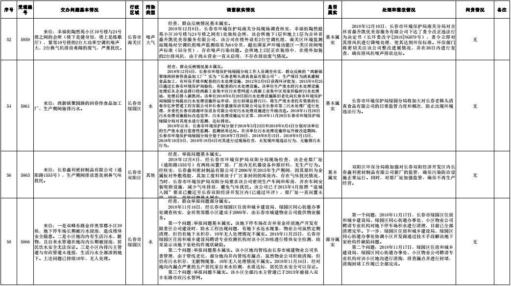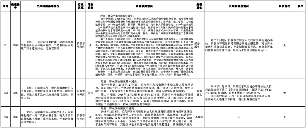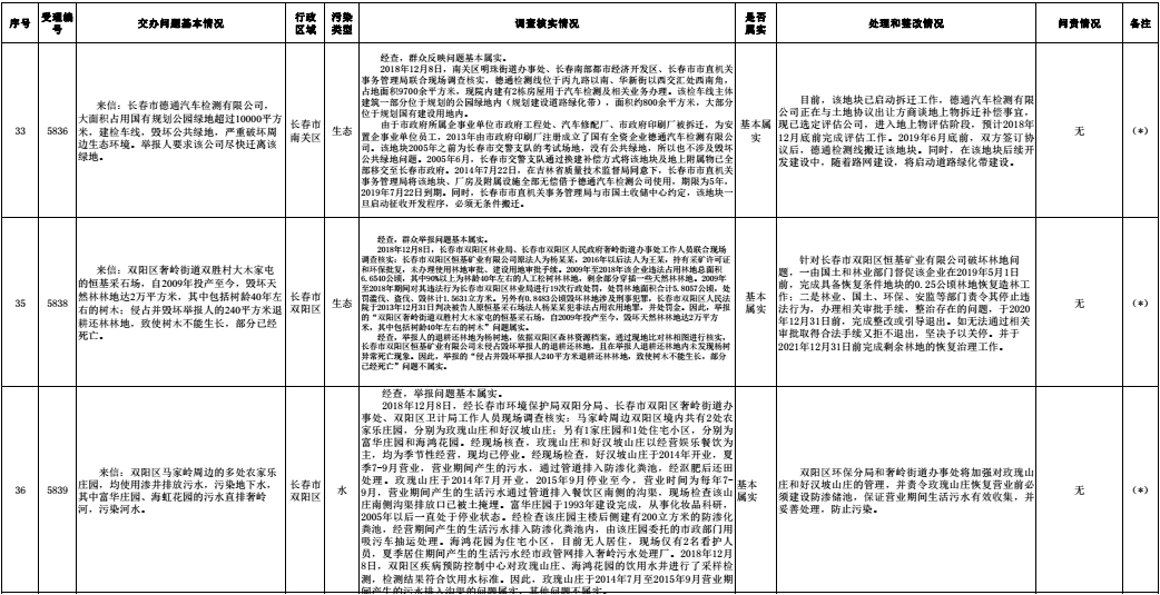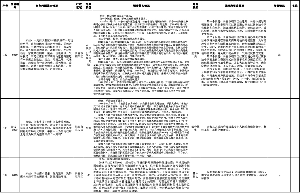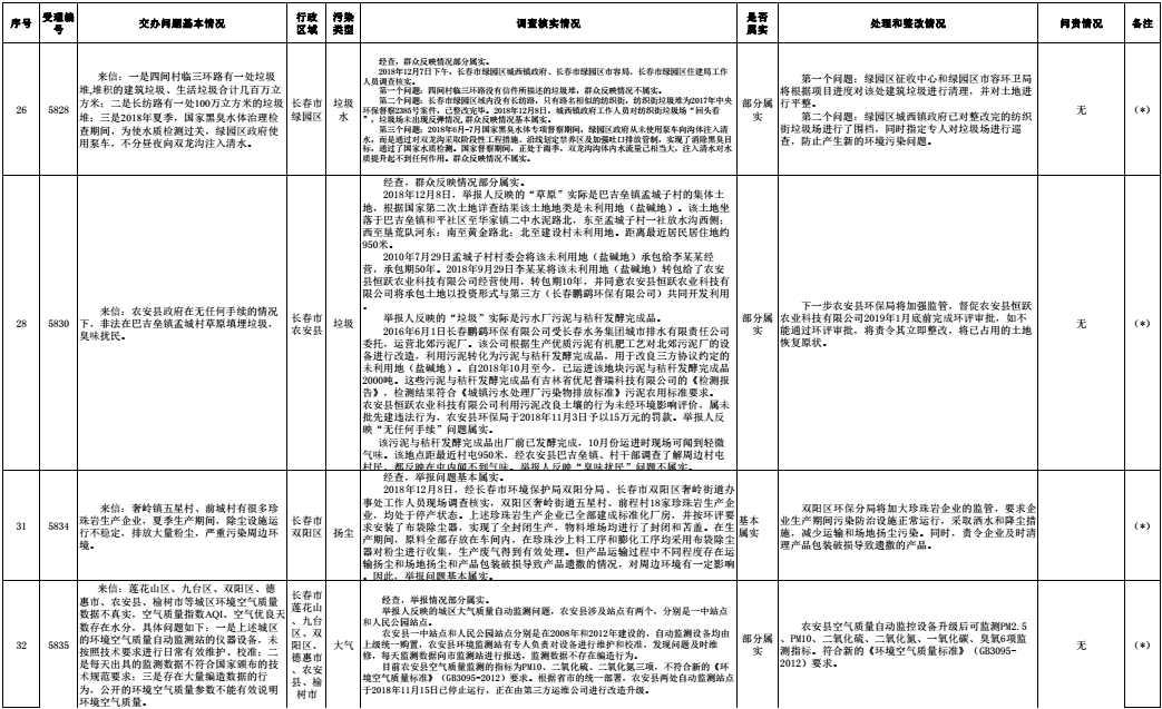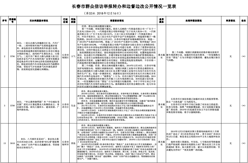 长春市群众信访举报转办和边督边改公开情况一览表(第32批 2018年12月16日)