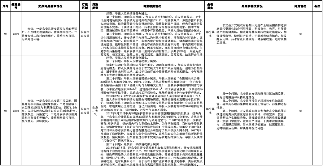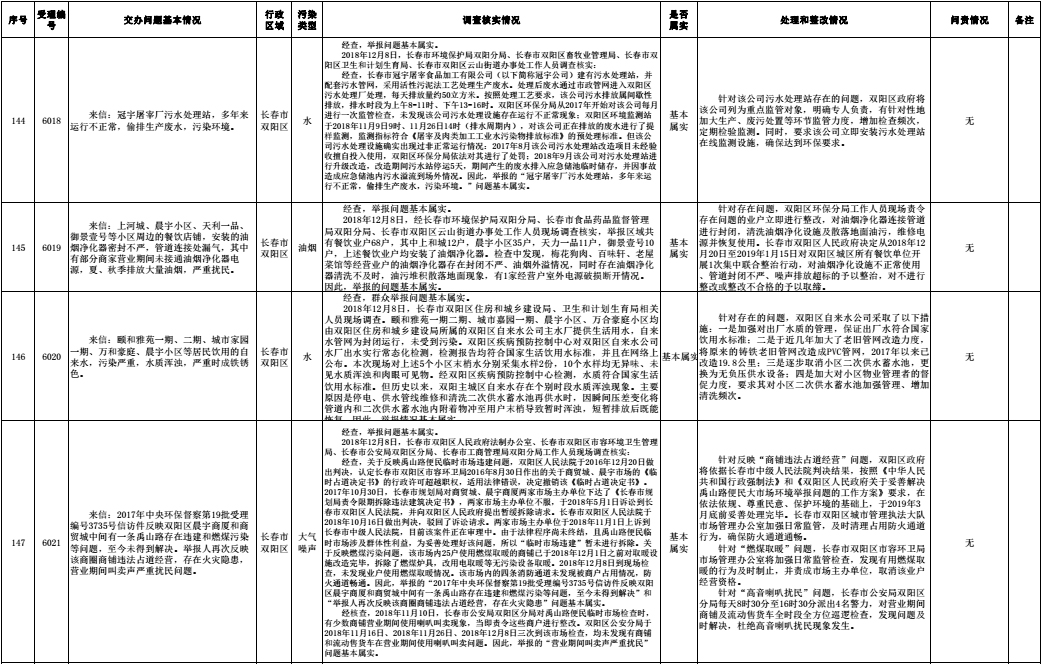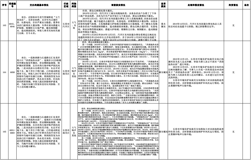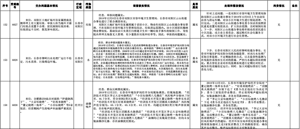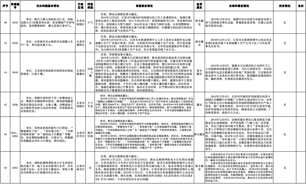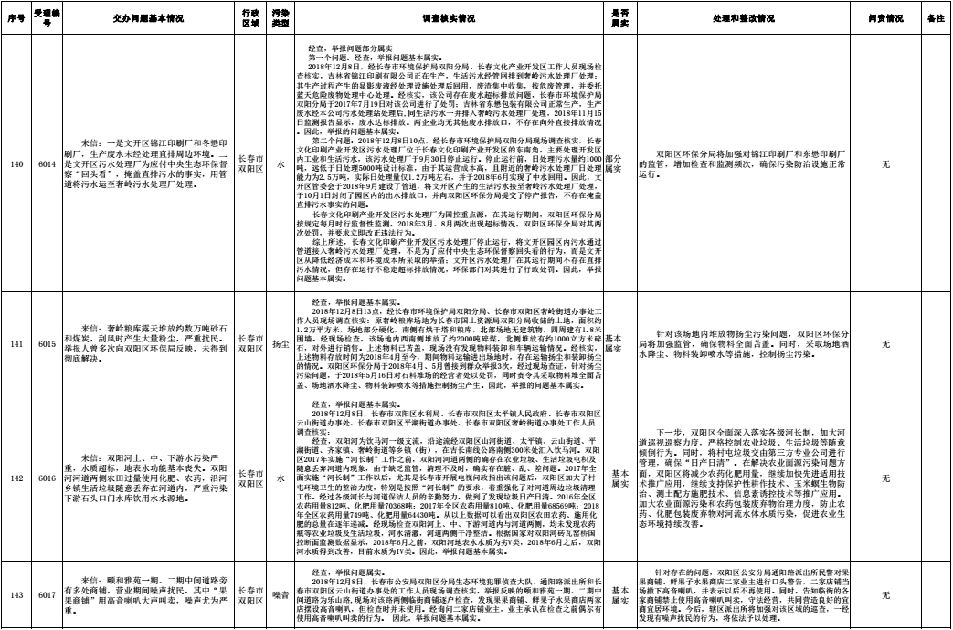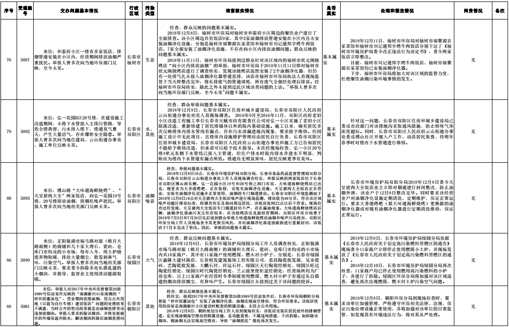 长春市群众信访举报转办和边督边改公开情况一览表(第32批 2018年12月16日)