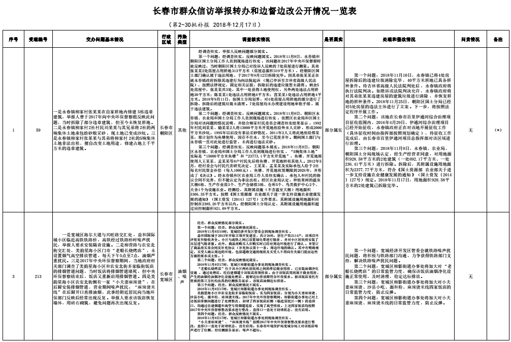 长春市群众信访举报转办和边督边改公开情况一览表(第2-30批补报 2018年12月17日)