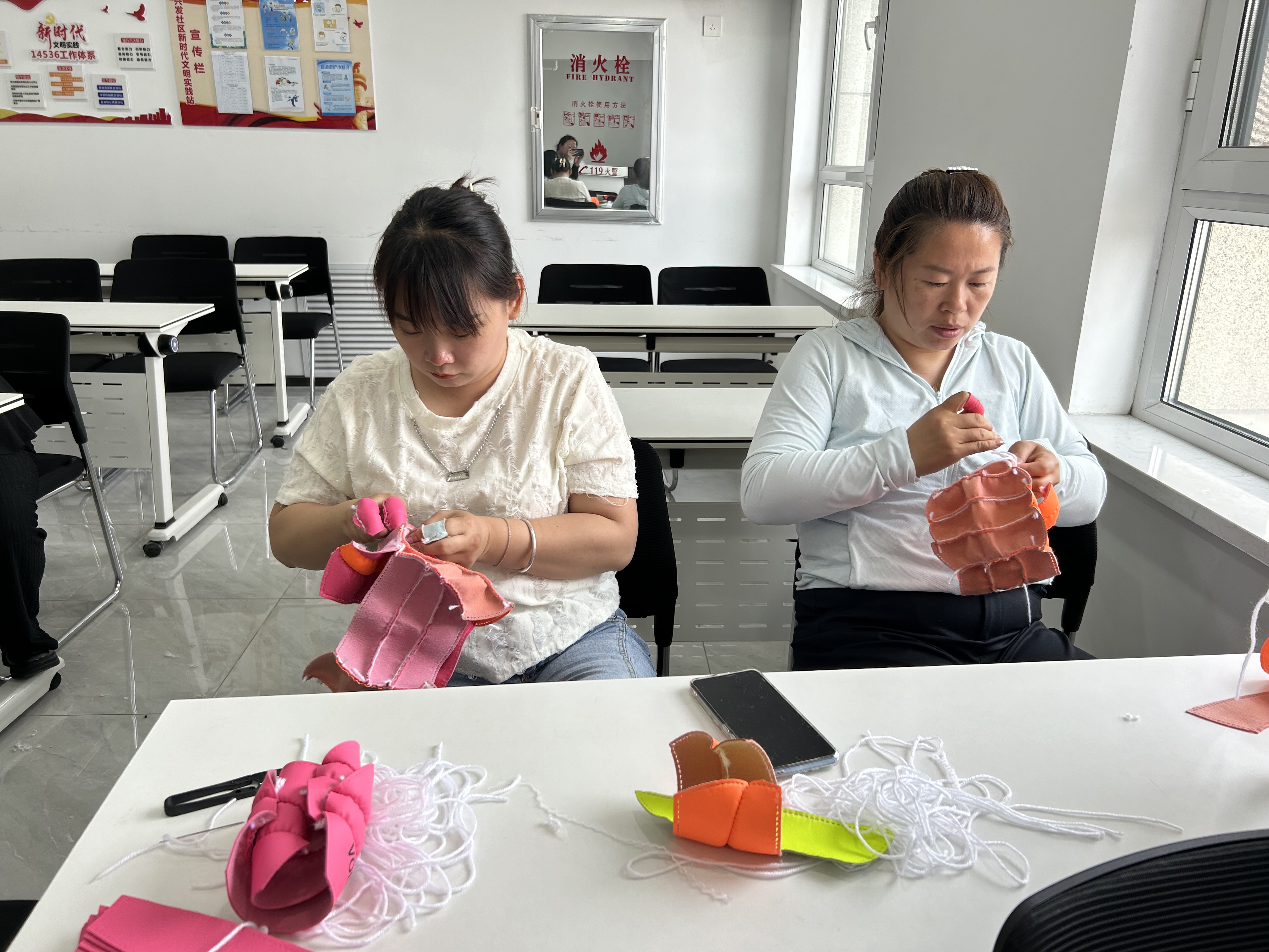 活动中,培训老师认真讲解着手工排球制作的细节,尺寸选取、勾编步骤、勾编技巧、成品合成,学员们聚精会神地聆听着老师的讲解。随后,她们便拿起工具,自己动手进行尝试,老师在旁边认真指导,大家也时不时地进行交流,分享自己的心得和感受。居民李阿姨说:“这‘邻里社·巧手汇’手工坊真好,在这里我们能够一边做手工活,一起唠家常,也不耽误接送孩子上学,还能增加一份收入,这日子越过越带劲了!”